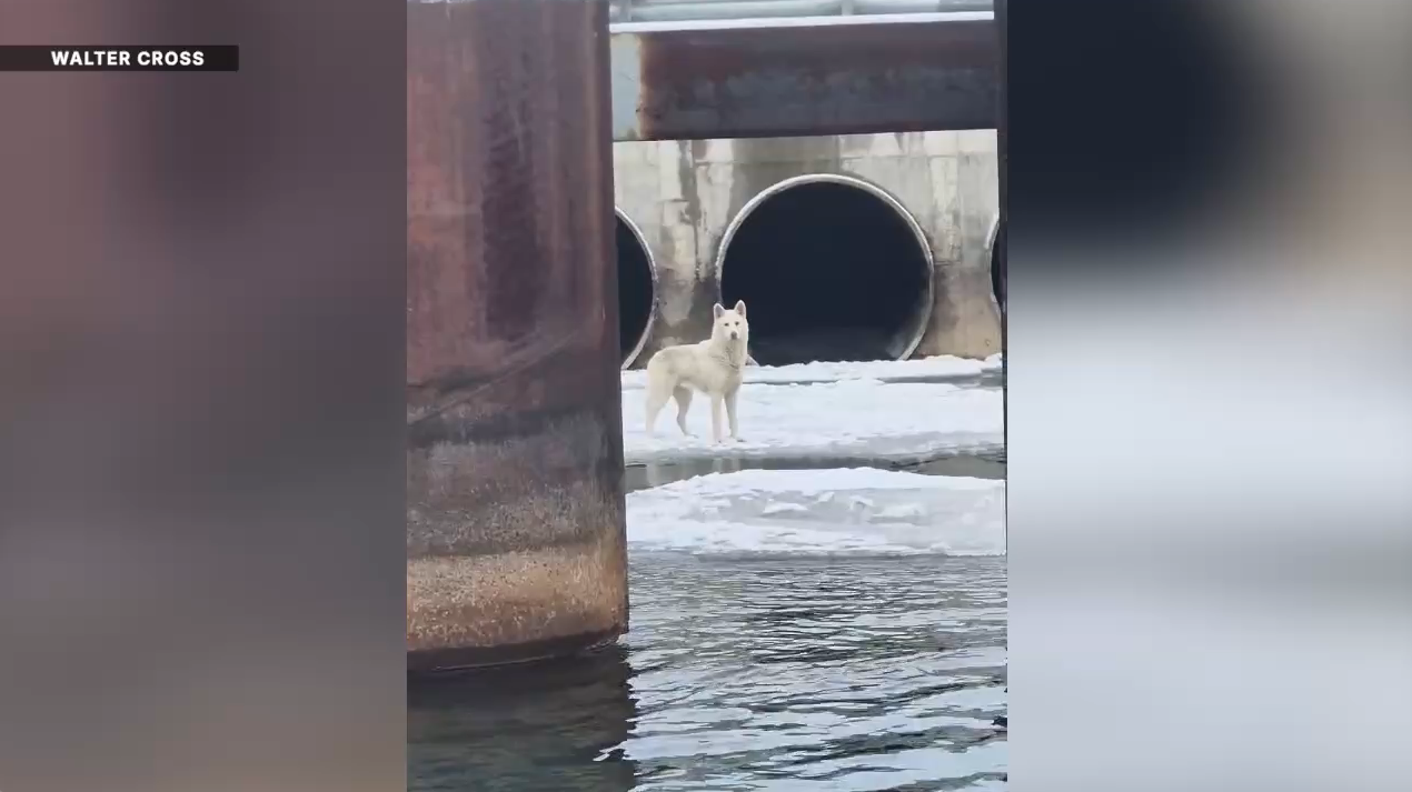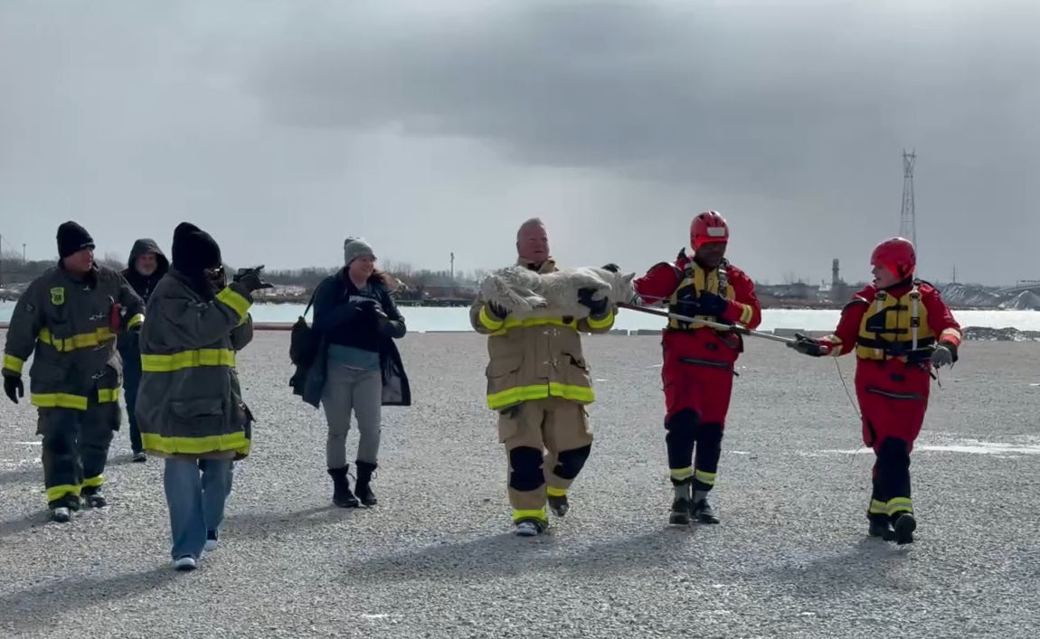 Detroit first responders rescue Siberian Husky stranded on ice near Gordie Howe bridge