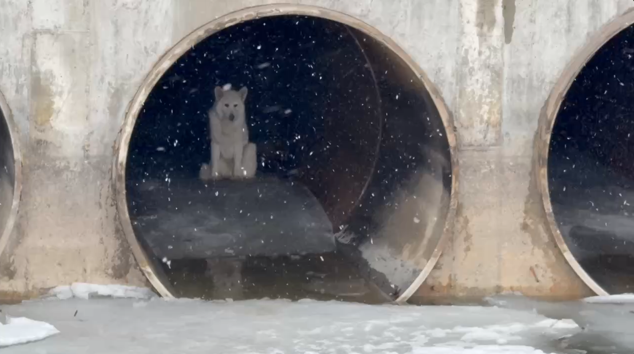 "It stood out... being a white dog with a black silhouette of a drainage tube behind it. It stood out like a sore thumb if you were pretty vigilant and you were looking," Humphrey said.