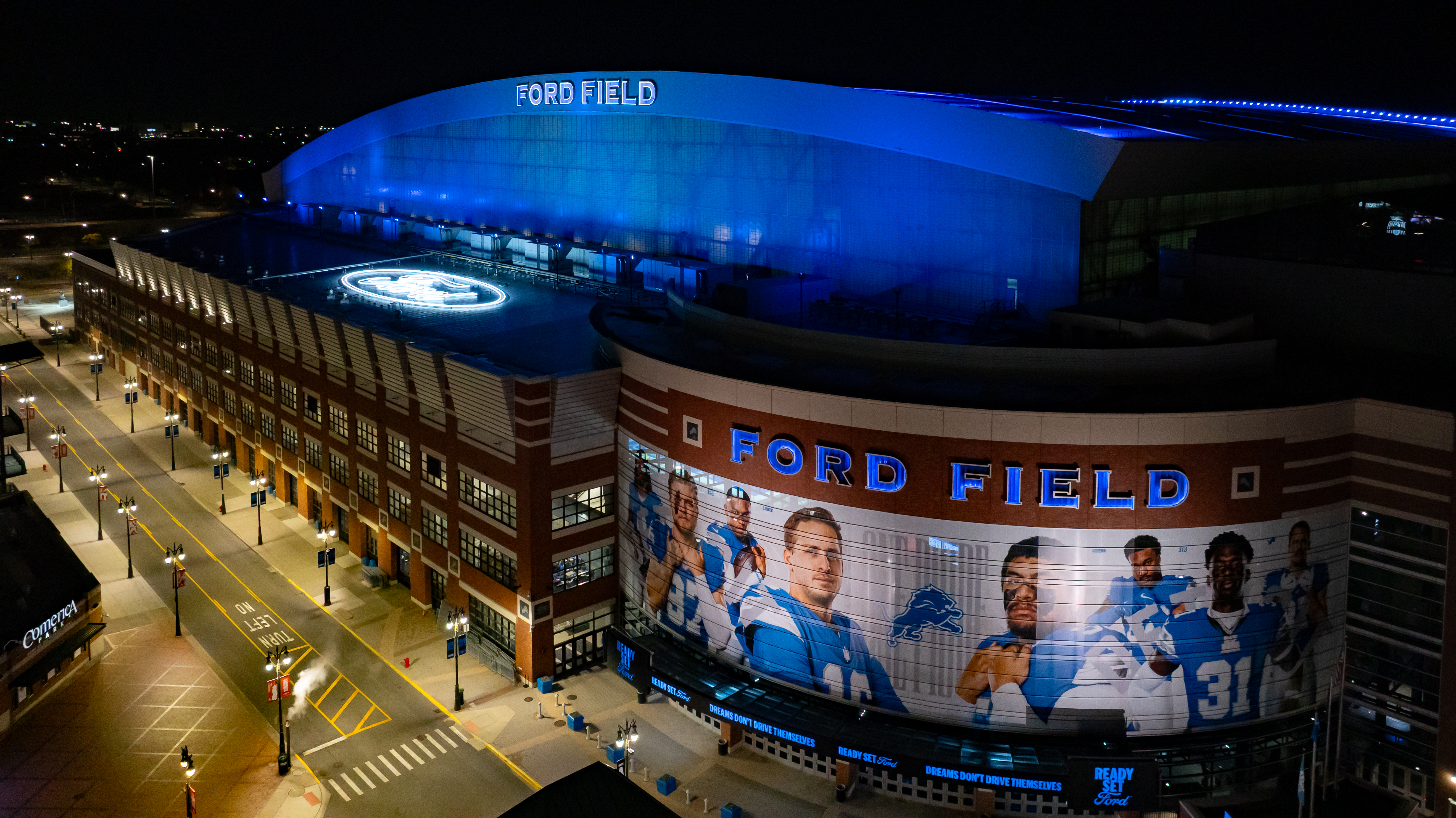 Ahead of tonight's Monday Night Football match-up with the Tampa Bay Buccaneers, the Detroit Lions have unveiled a lighting upgrade to the outside of Ford Field.