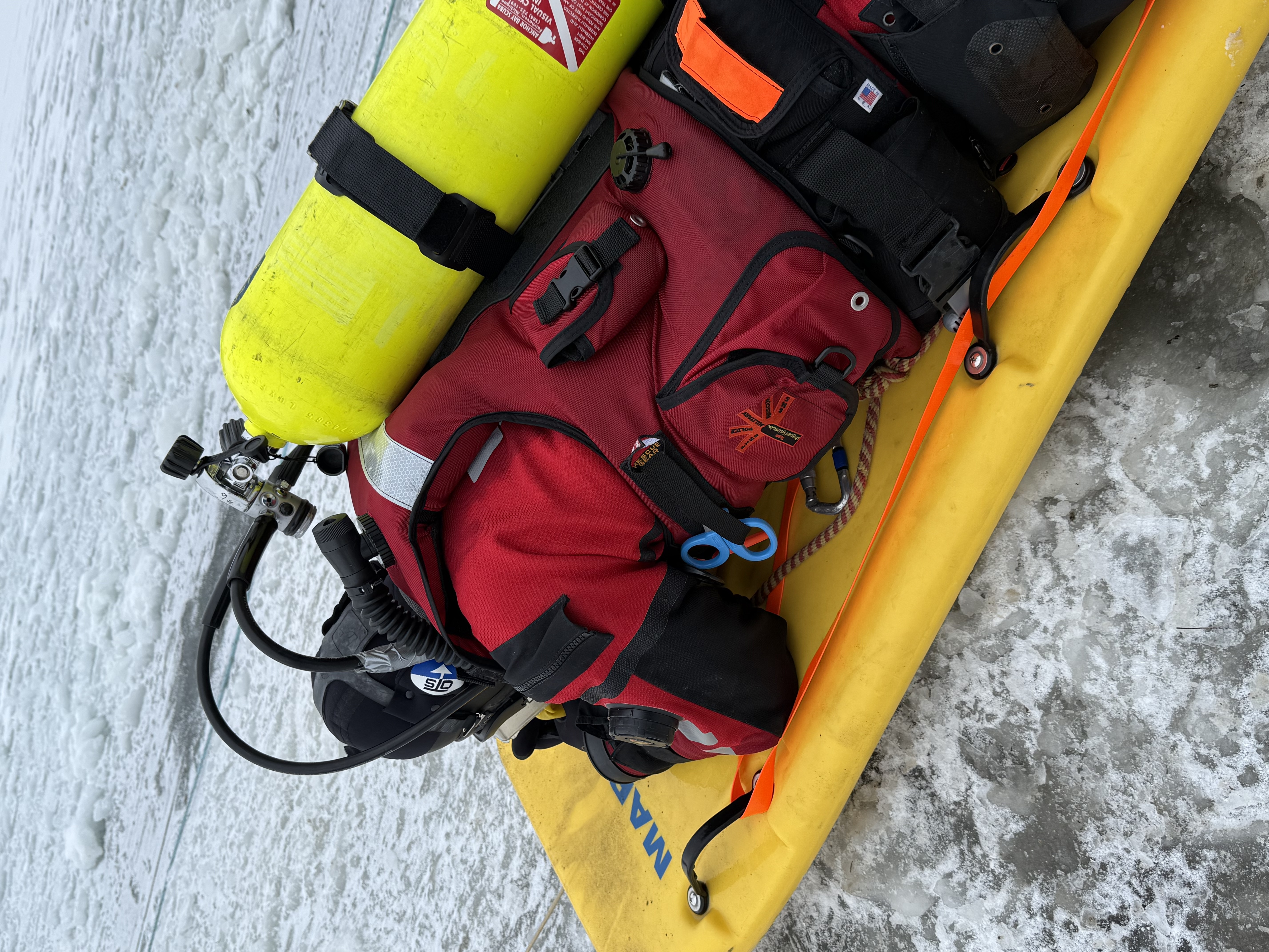 The training prepares first responders for the worst-case scenario: a person or sometimes even a vehicle falling through the ice.