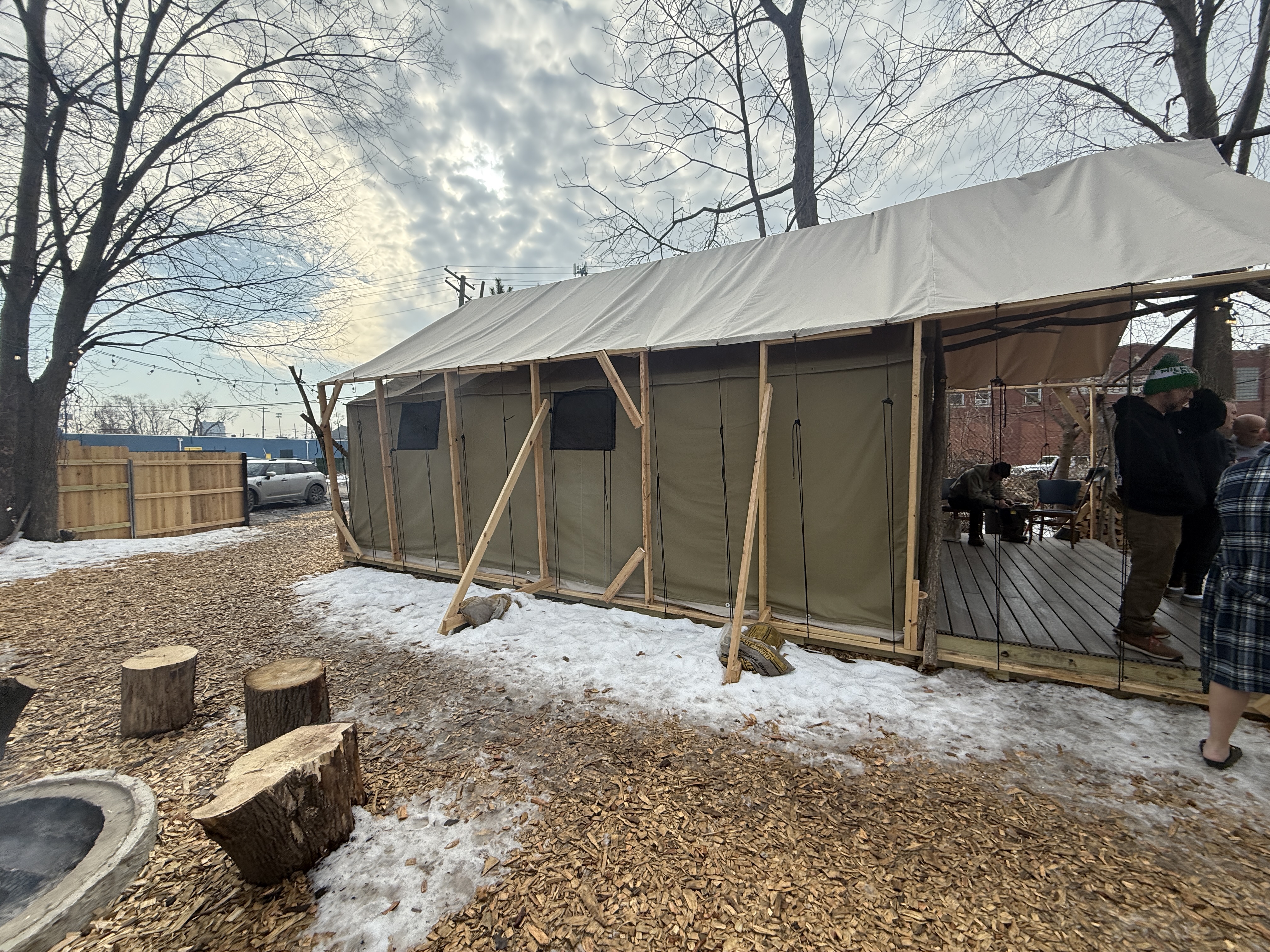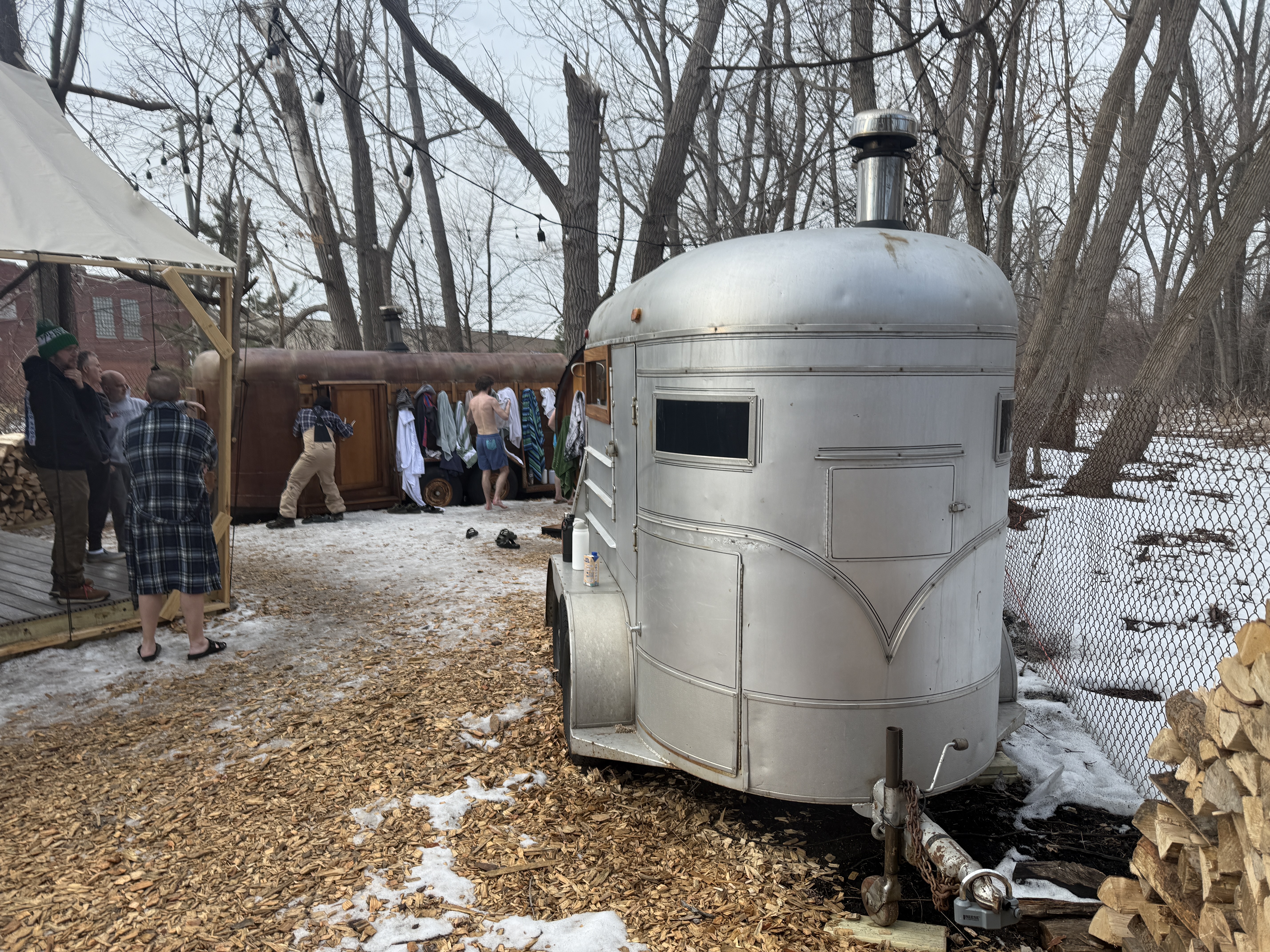 Guests can change inside a canvas tent, where you also check in for your sauna session. You feel as if you're transported to Northern Michigan while being just two miles from Downtown Detroit.