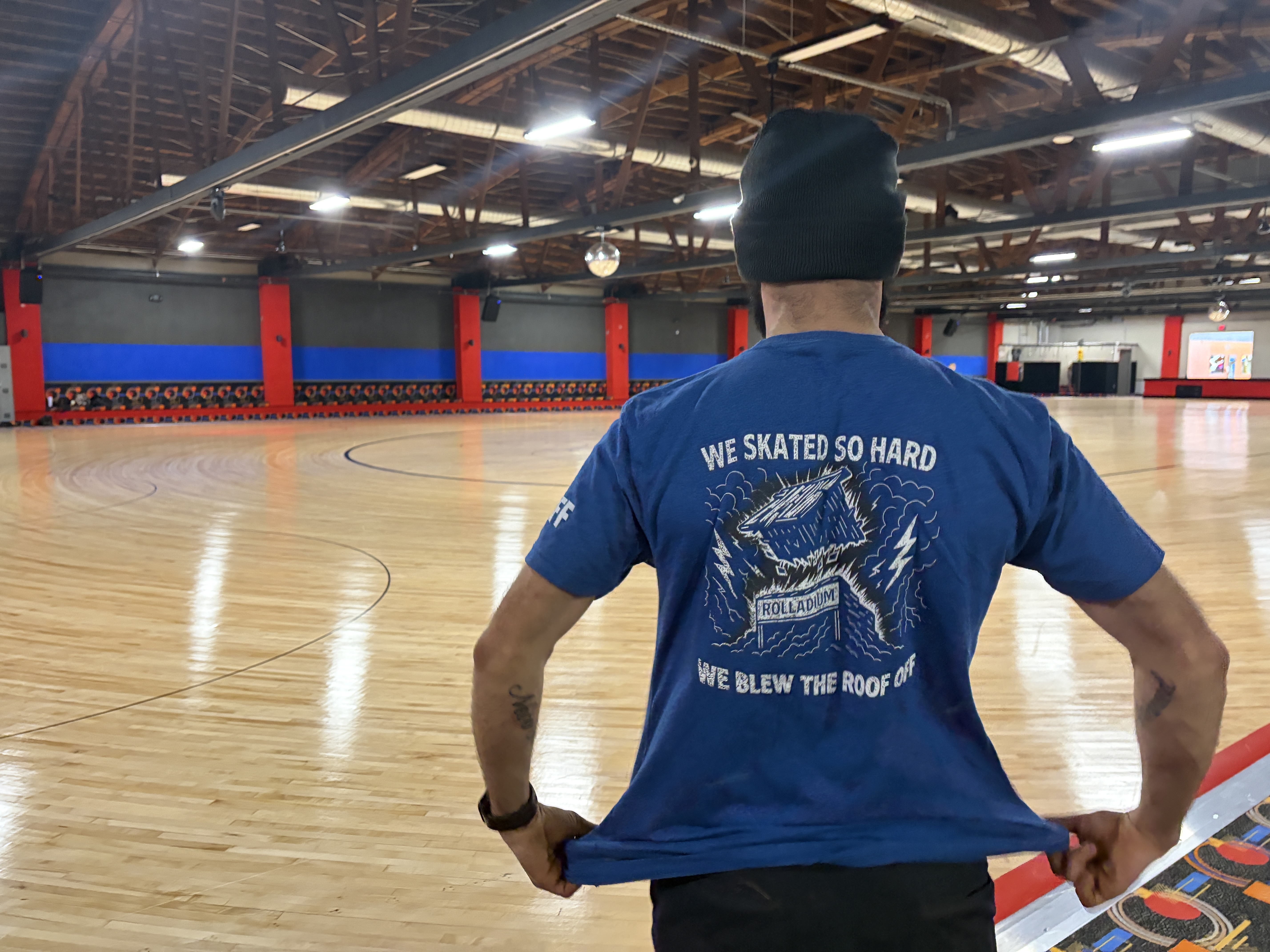 The Anselmi family has turned their biggest challenge into a celebration, creating new t-shirts commemorating the roof incident that temporarily closed their doors, which state: "We skated so hard we blew the roof off."